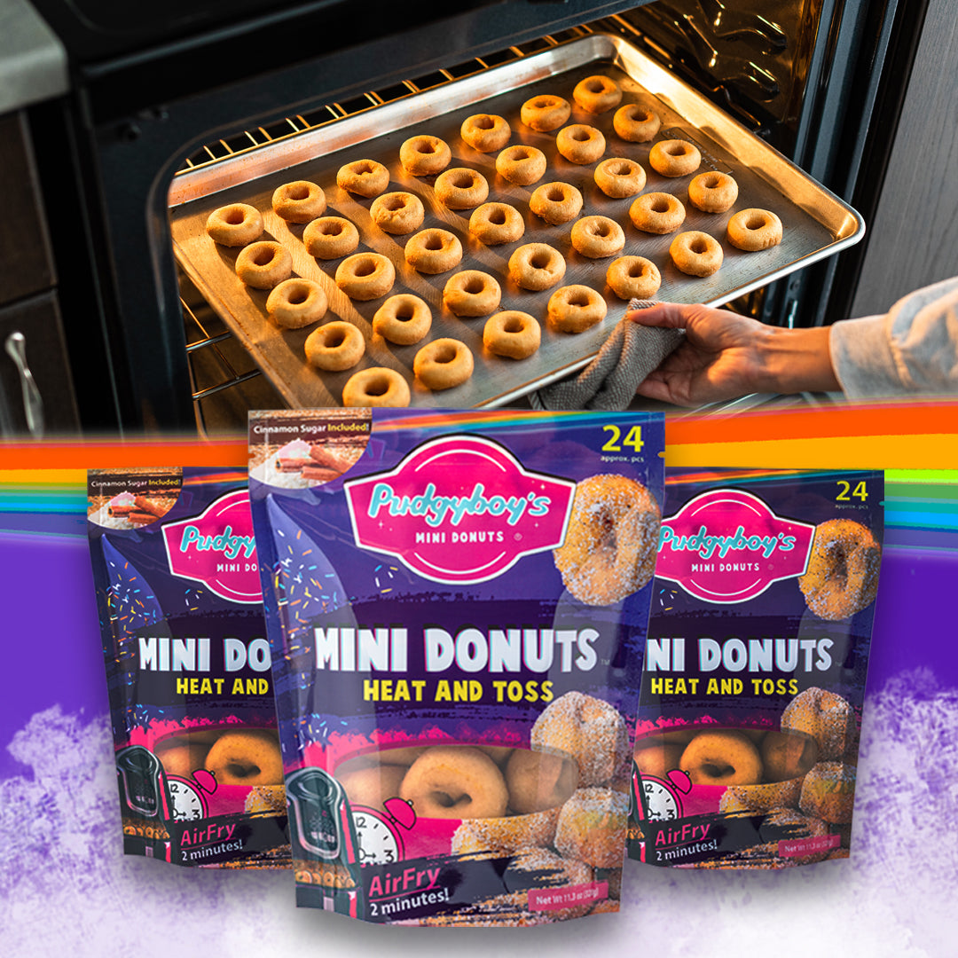 Find Pudgyboy's Mini Donuts 24pk in your local grocery store freezer OR bakery.